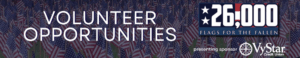 Volunteers are needed to help place 26,000 48-star American flags on Wednesday, May 20, (rain date: Thursday, May 21) and to assist with flag removal on Tuesday, May 26.