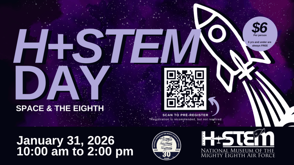 Blast off into discovery at the National Museum of the Mighty Eighth Air Force during H+STEM Day, taking place Saturday, January 31, 2026, from 10 a.m. to 2 p.m. This special event launches the museum’s first H+STEM Day of the year and is part of the museum’s 30th anniversary programming, celebrating three decades of education, innovation, and inspiration.