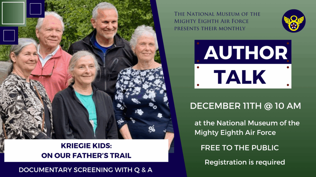 The National Museum of the Mighty Eighth Air Force’s monthly Author Talk series is proud to present a documentary screening of the Kriegie Kids: On our Father’s Trail with three of the participants for a Q & A to follow. This program will take place on December 11th at 10:00 am at the museum.