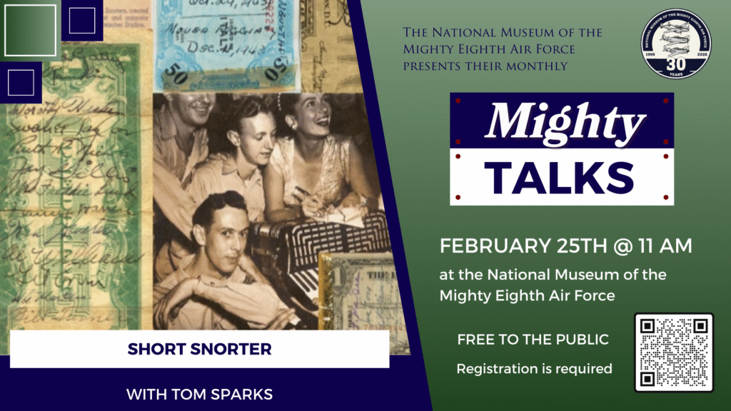 Chatham County, GA – The National Museum of the Mighty Eighth Air Force will host The Short Snorter Project, a traveling exhibit showcasing rare and historic World War II artifacts, on Tuesday, February 24, and Wednesday, February 25, 2026, with a presentation by The Short Snorter Project founder, Tom Sparks at 11 am.